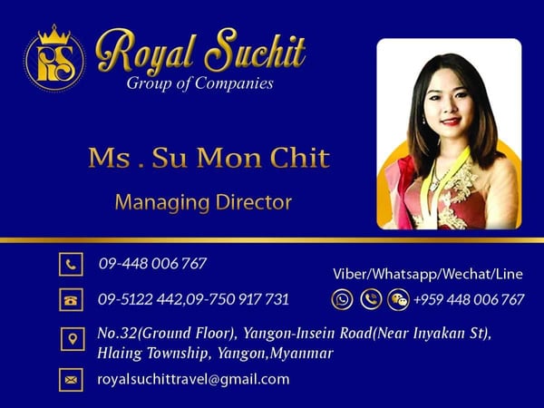 Welcome to Aye Chan Su LLC company profile, where we aim to turn your travel dreams into reality. With a deep passion for exploration and a commitment to providing unforgettable experiences, we specialize in creating bespoke journeys tailored to your unique preferences. Our dedicated team of travel experts is here to guide you every step of the way, ensuring that your adventure is not only seamless but also truly exceptional. At our tourism company, we believe in the transformative power of travel. Whether you seek relaxation on a sun-drenched beach, cultural immersion in bustling cities, or thrilling adventures in remote wilderness, we have the expertise and resources to make it happen. From luxurious accommodations to off-the-beaten-path excursions, we take care of every detail so you can focus on creating lifelong memories. Our commitment to sustainable tourism practices means that we strive to minimize our impact on the environment and support local communities wherever we go. By choosing our company for your travel needs, you are not only embarking on a remarkable journey but also contributing to the preservation of our planet and the livelihoods of those who call it home. Join us on a journey of discovery, connection, and wonder. Let us be your trusted partner in exploring the world and unlocking its endless possibilities. Your adventure starts here, with our tourism company."